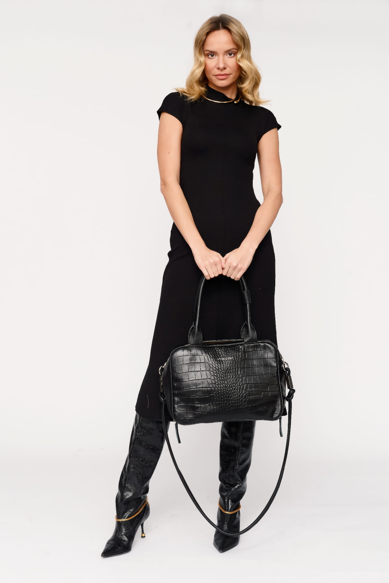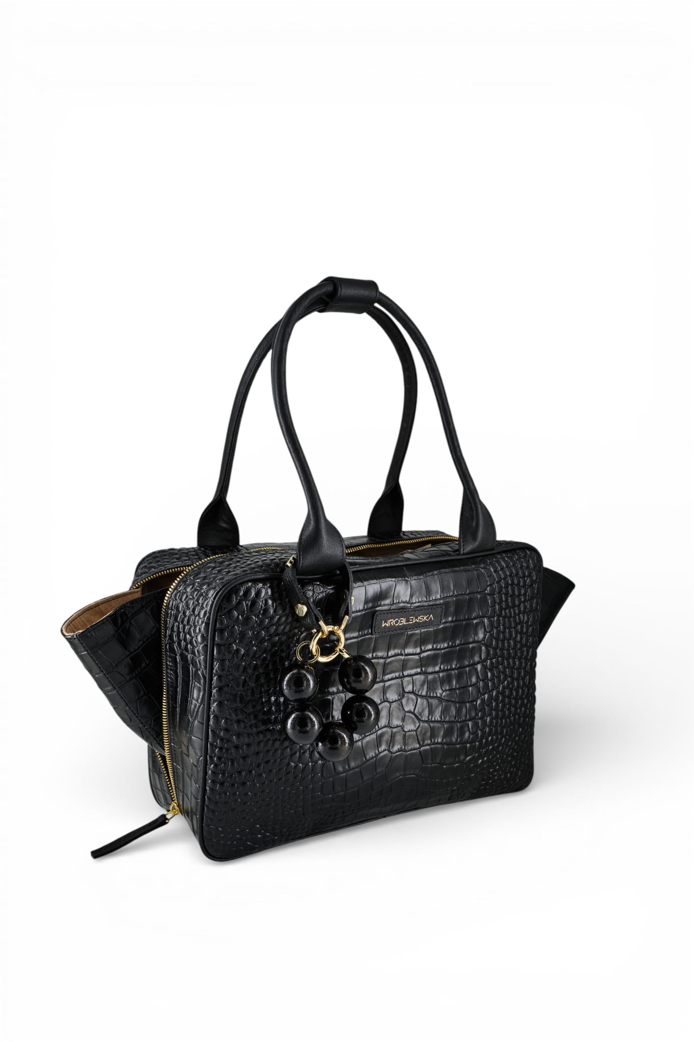 - Wysokiej jakości wykonanie: Torba została starannie uszyta z czarnej skóry naturalnej, co nadaje jej luksusowy wygląd i miękkość w dotyku.