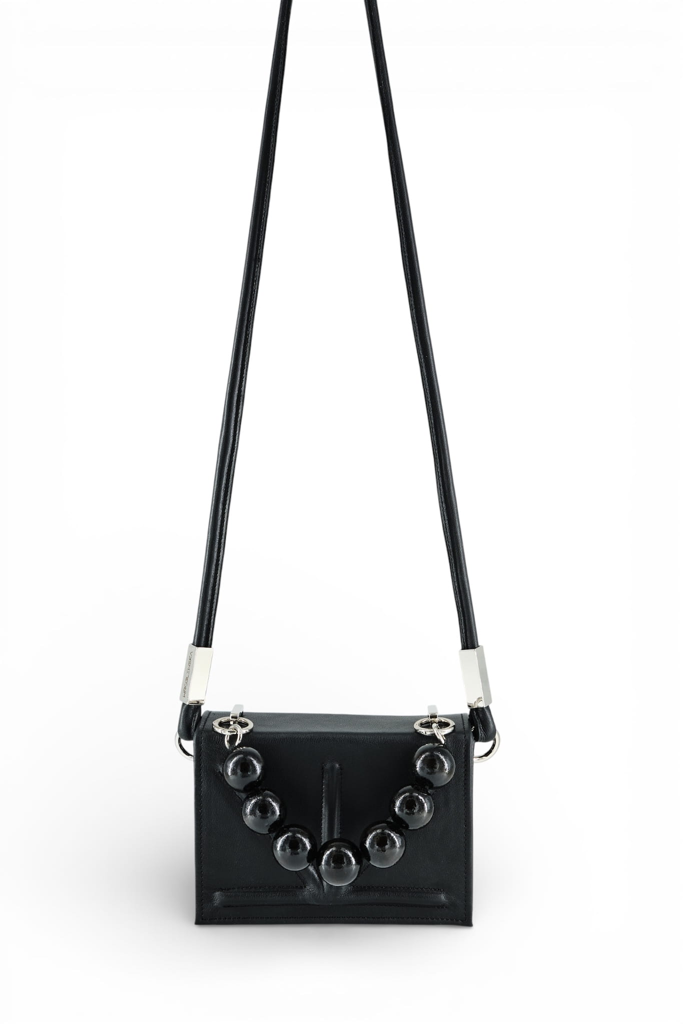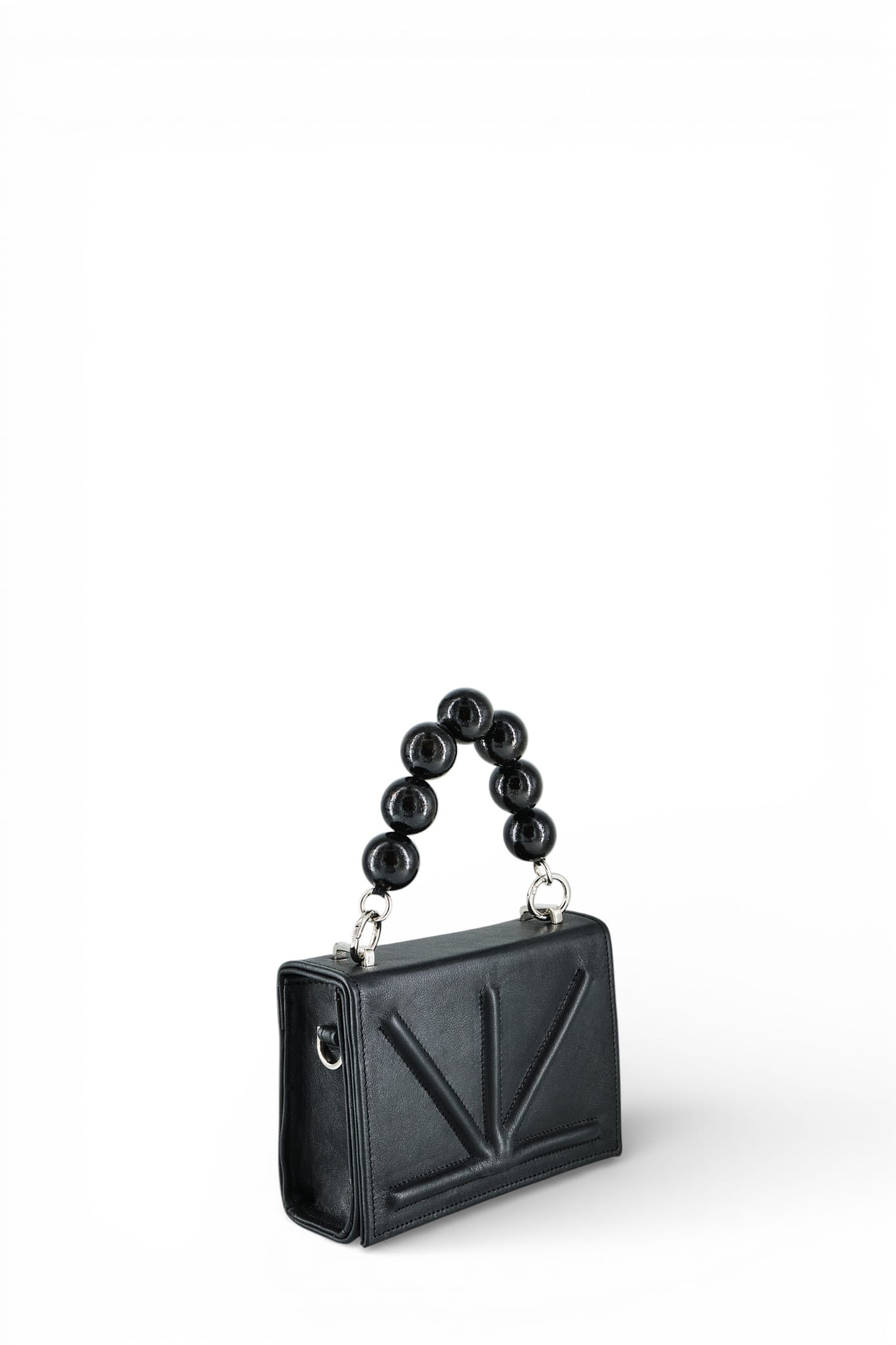 Torebka wizytowa o pudełkowym kształcie i nieco wydłużonym formacie, wykonana z licowej skóry naturalnej z tłoczonym logo i numerem serii. Wnętrze produktu chronione jest dzięki klapce zamykanej na ukryte magnesy. Środek wykończony został luksusową podszewką z miękkiej i przyjemnej w dotyku alcantary, którą możesz znać z wyściółek pokrowców na okulary. W zestawie znajdują się dwa rodzaje pasków: krótszy do trzymania w ręku z drewnianych korali lakierowanych na kolor czarny oraz dłuższy o okrągłym przekroju, umożliwiający noszenie torebki na ramieniu. Srebrne metalowe elementy okuciowe wykonane zostały z poszanowaniem jakości przez włoskiego producenta. Torebka posiada ozdobne kółka otwierane z możliwością odpinania. Produkt wykonany rzemieślniczo w Polsce. Wybierając go wspierasz rozwój lokalnej marki i przemysłu galanteryjnego w Polsce.
